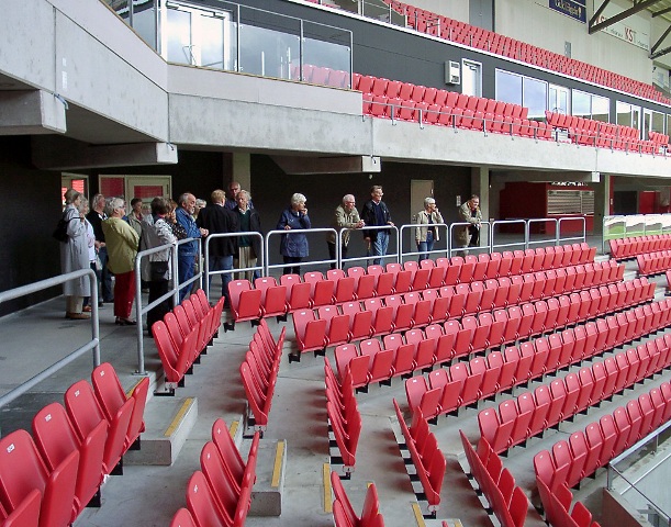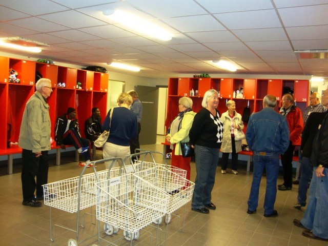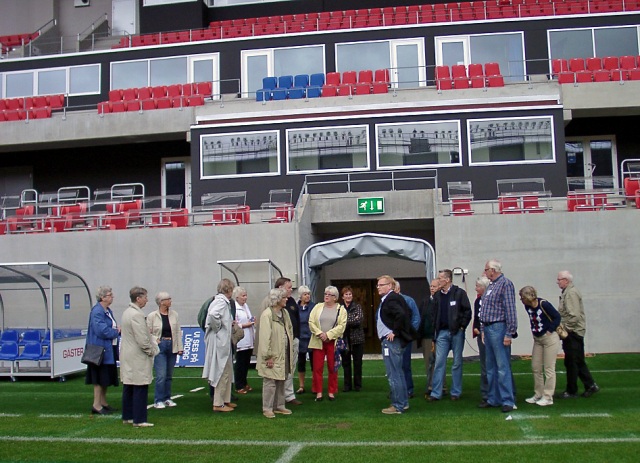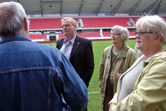 Drygt 20-talet Aktiva Seniorer blev guidade runt på Guldfågeln Arena av KFF´s säkerhetsansvarige Björn Andersson.