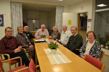 Efter årsmötet hölls ett konstituerande sammanträde och den nya styrelsen syns på bilden ovan.. Fr.v: Stig, Barbro, Rune, Jan, Ulla-May, Birger, Sven och Mary-Ann. |