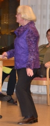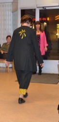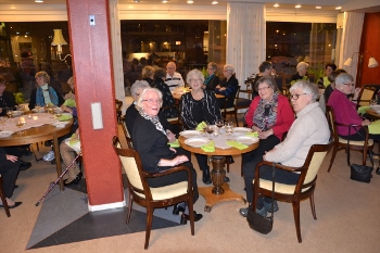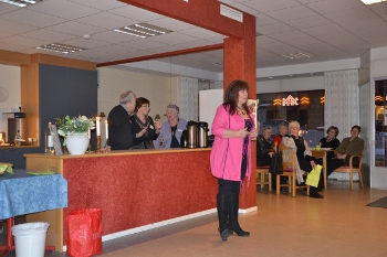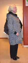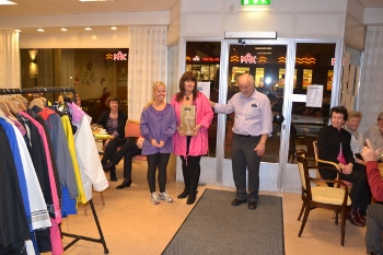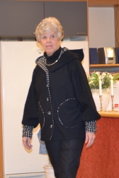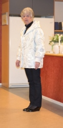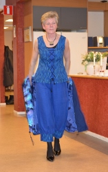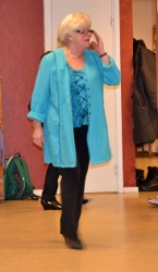 Efter att ha blivit bjudna på tunnbröd och piteåost m m hjälptes damer från föreningen åt med att mannekänga och visa Eva Herneviks klädkollektion.