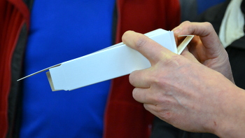 När tuben är fylld vecklas en kartong upp och tuben läggs i