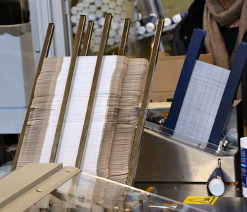 Kartonger på väg in i maskinen