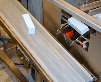 kartongen som via ett löpandeband transporteras till en