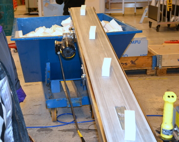 Demonstration av tillverkningsprocessen. Maskinen matas med