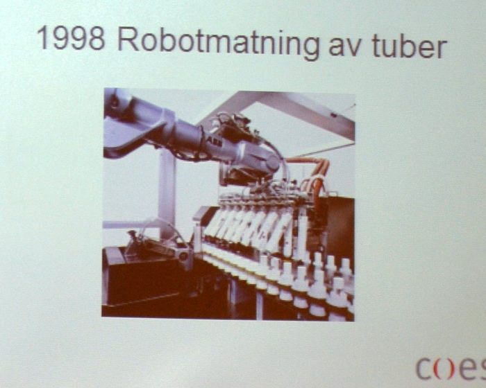 högteknologiska maskiner i arbete med fyllning av olika tuber.