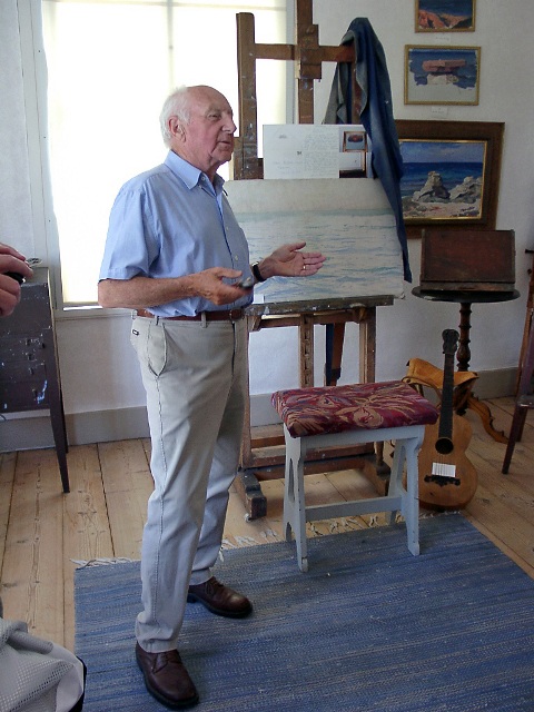 Inne i Hullgrenska museet berättade Gunnar om "marinmålaren" Oskar Hullgren.